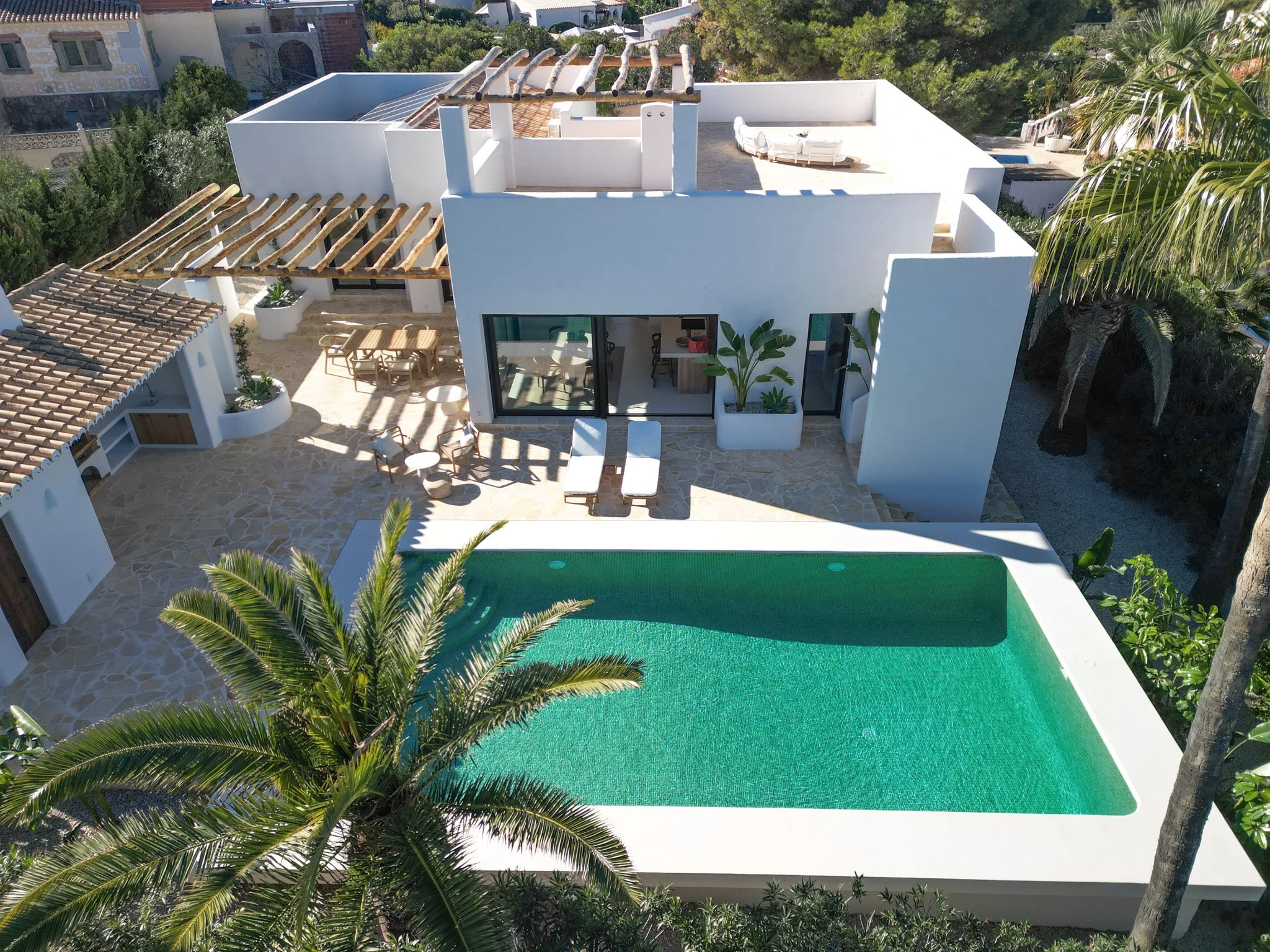 Located in the sought-after area of Balcon al Mar, in Jávea, this elegant modern Ibiza-style property offers generous spaces and exceptional light throughout the year.